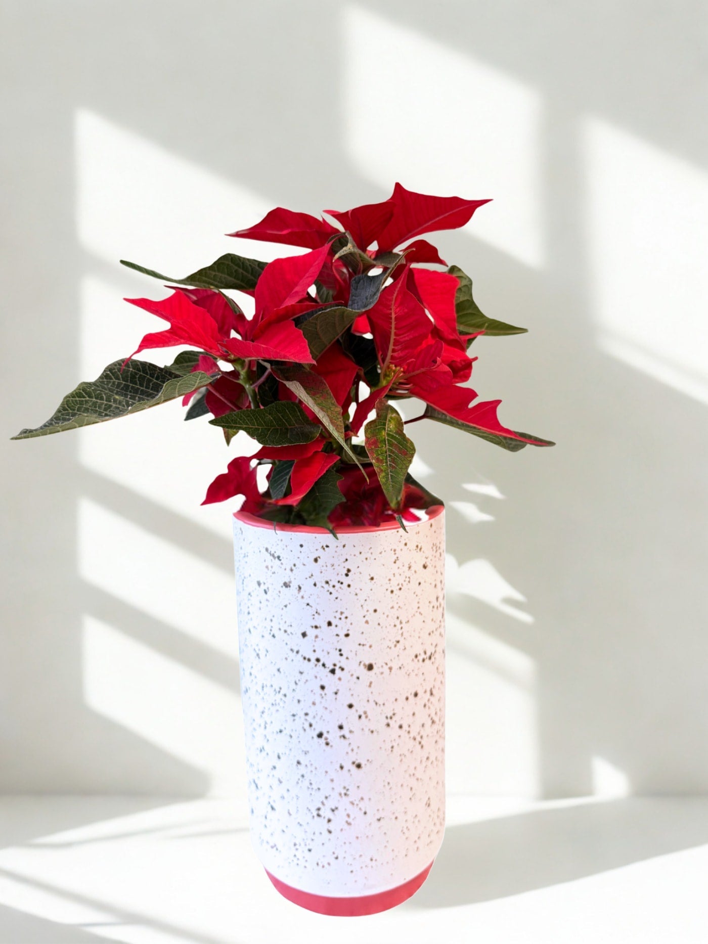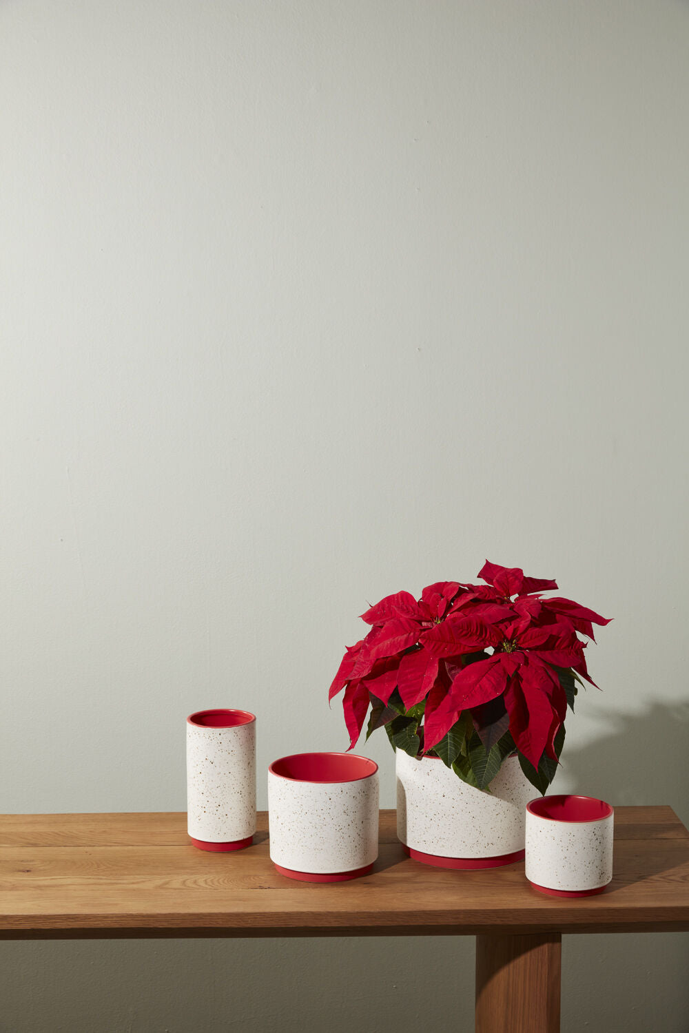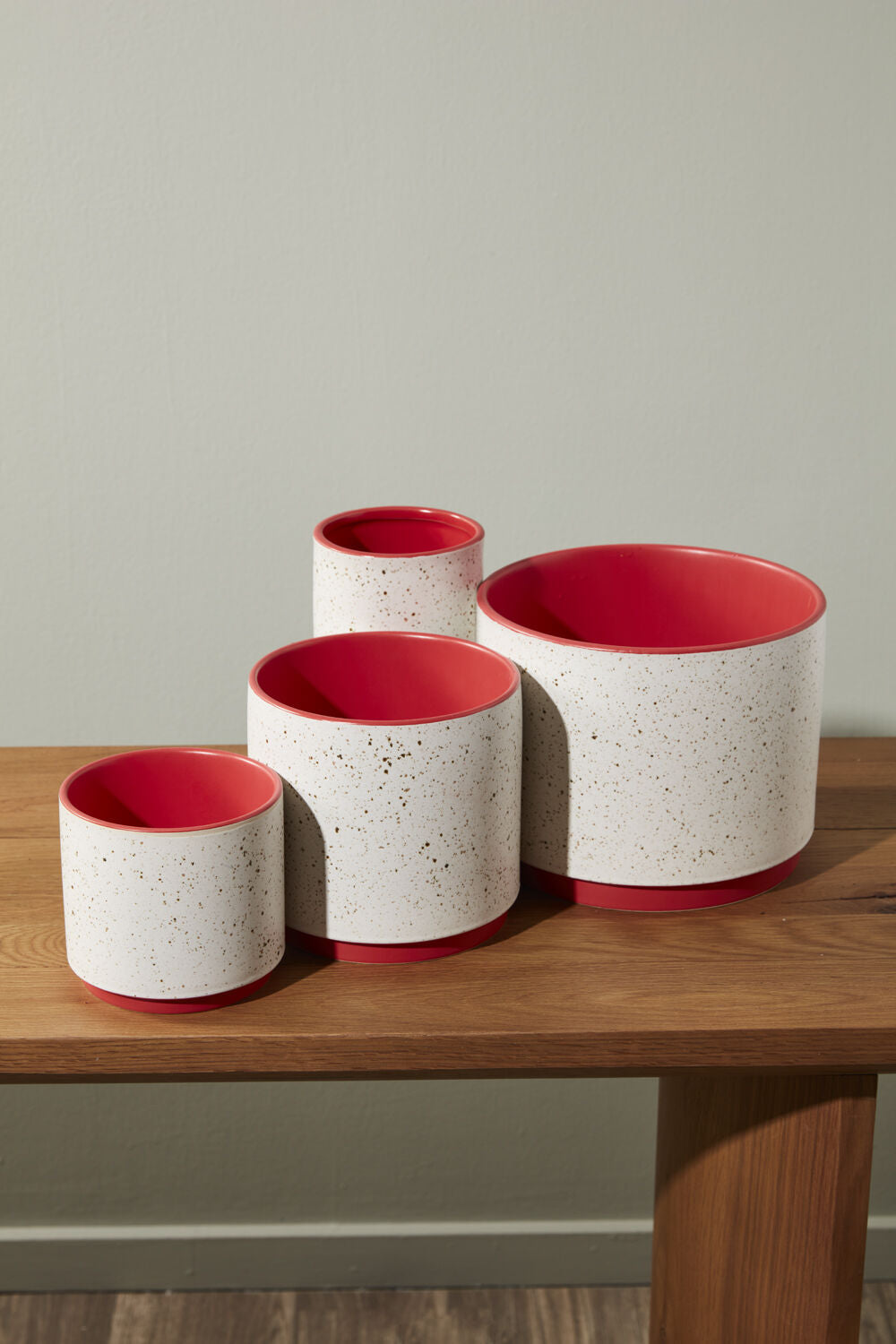 Beautifully festive during the holidays & a perfect pop of color for all seasons, the medium color blocked Leavenworth Collection offers a cheerful lift to any display with its speckled glaze on the off-white exterior & matte red glaze inside & on the base.