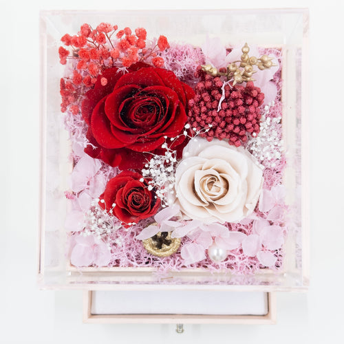 Rotating Jewelry Box with Heart Necklace and Preserved Rose